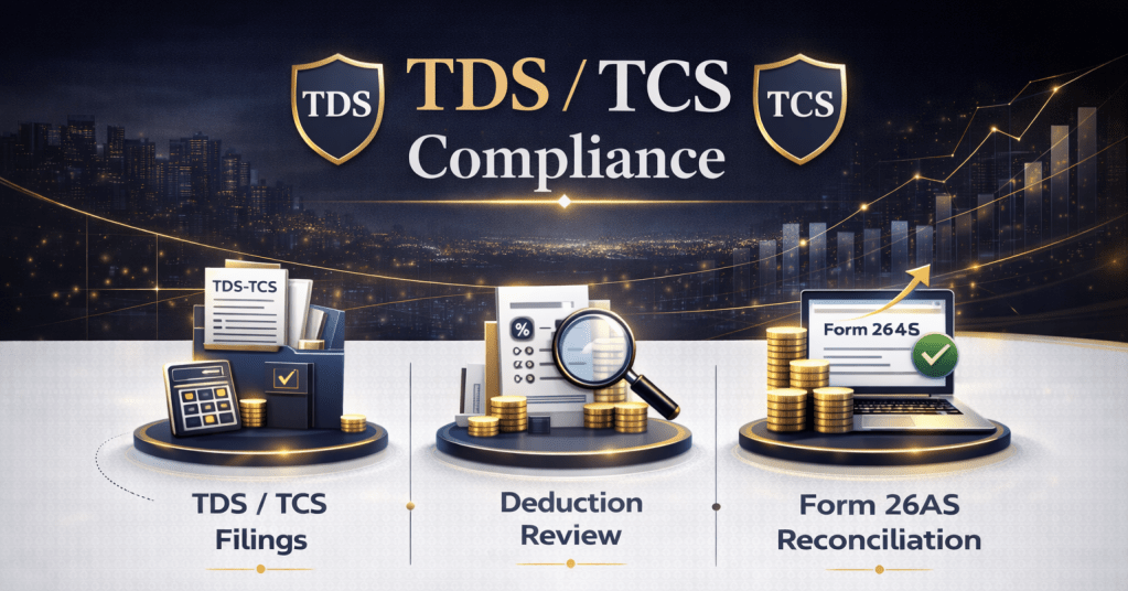 At Calculus, TDS & TCS compliance is managed as a structured control function, ensuring correct deduction/collection, timely deposit, accurate return filing, and reconciliation to prevent penalties and disallowances.